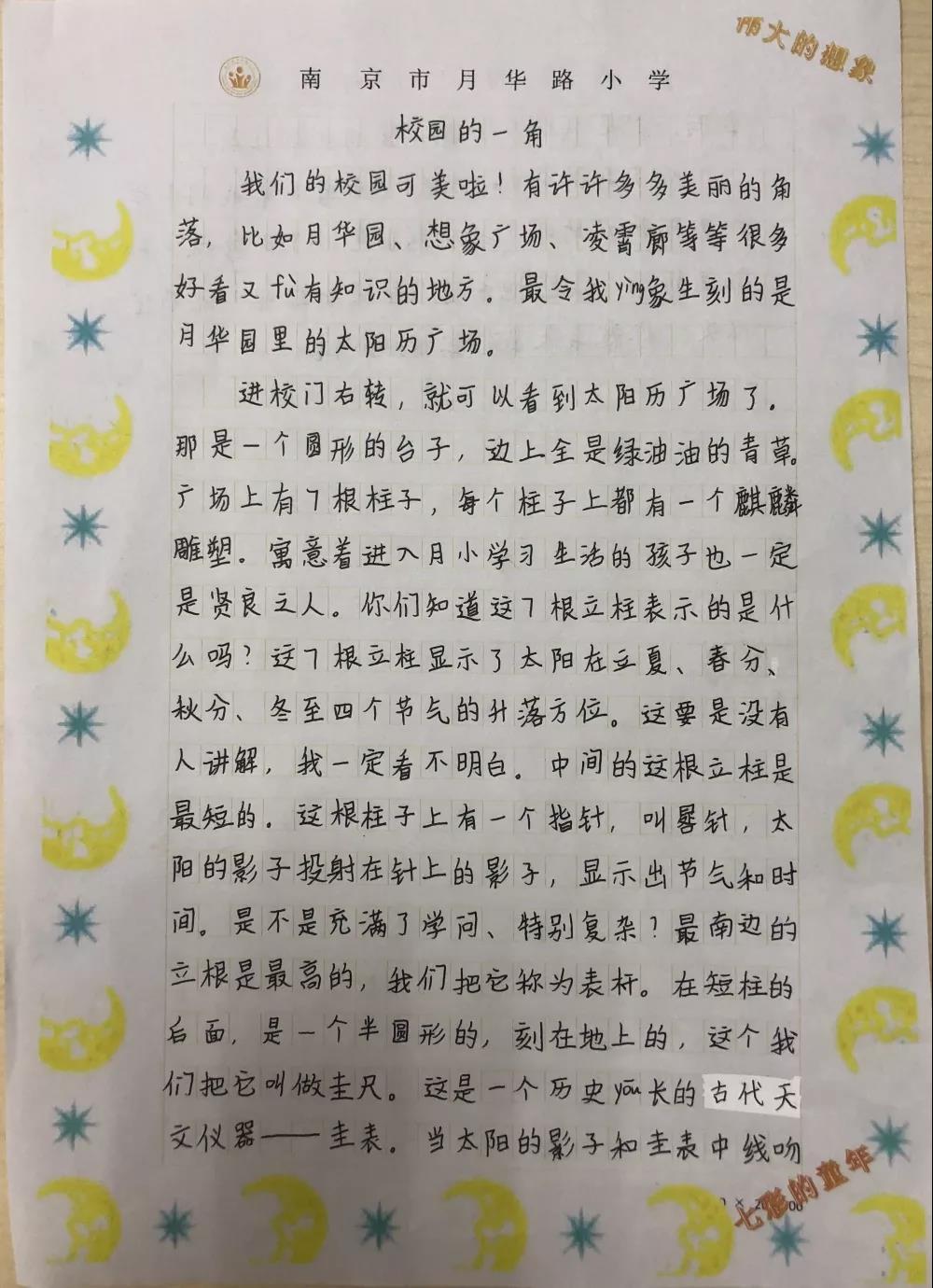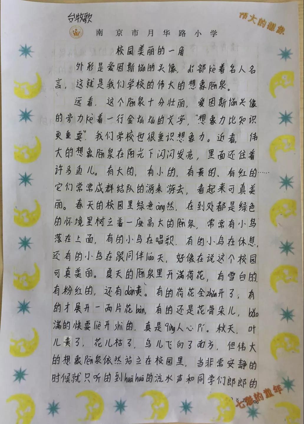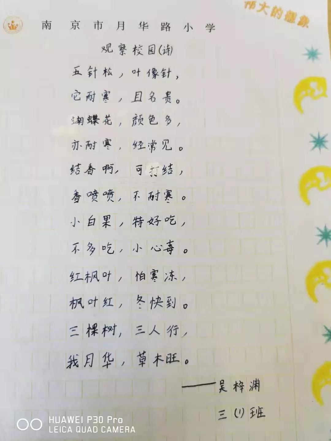 在三(1)班夏银老师的带领下,月华路小学三、四年级的学生带着纸、笔,漫步在充满想象味道的月华园中,他们在校园里发现美、探究美、追问美 、记录美。